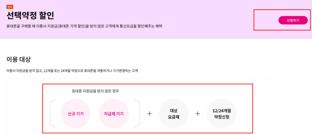 LGU+ 선택약정 신청/안내 페이지