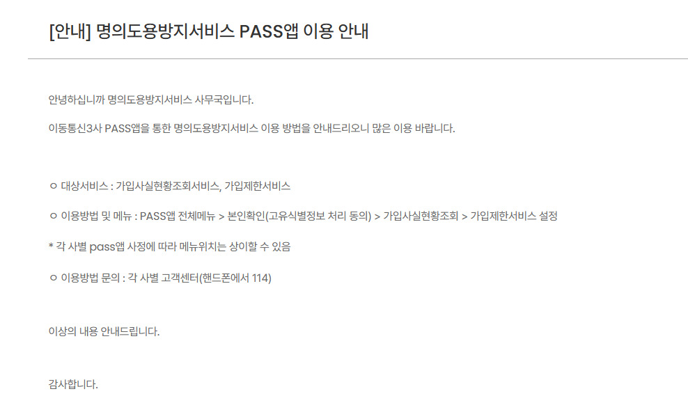 PASS 무료 명의도용방지서비스 신청·설정 방법: 통신 3사 공통 경로