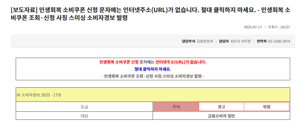 • 모르는 번호/링크로 개인정보를 요구하면 절대 입력하지 마세요.